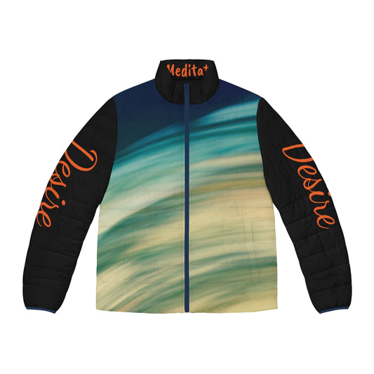 Deep Blue Mountain Men's Puffer Jacket (AOP)