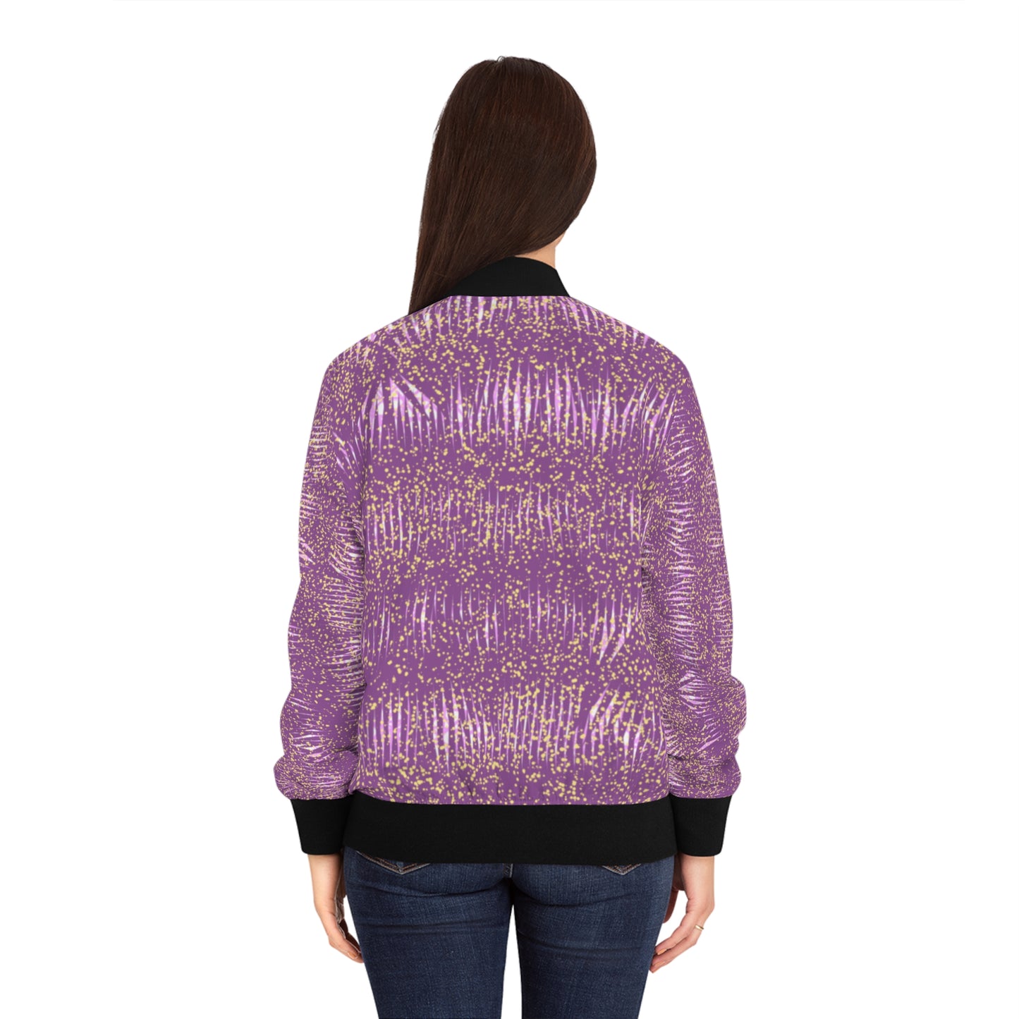 Few items are as iconic as the bomber jacket - and this one takes things to a whole new level. Featuring a stand-collar type, ribbed cuffs, collar, and hem, it's as durable as it's comfortable. Add your custom, all-over-print ideas to this women's bomber jacket and make it cute, badass, or both.